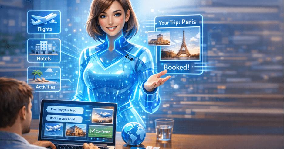 Zoe applies agentic AI concepts to its travel arrangements and executes them in a natural, human-like manner.